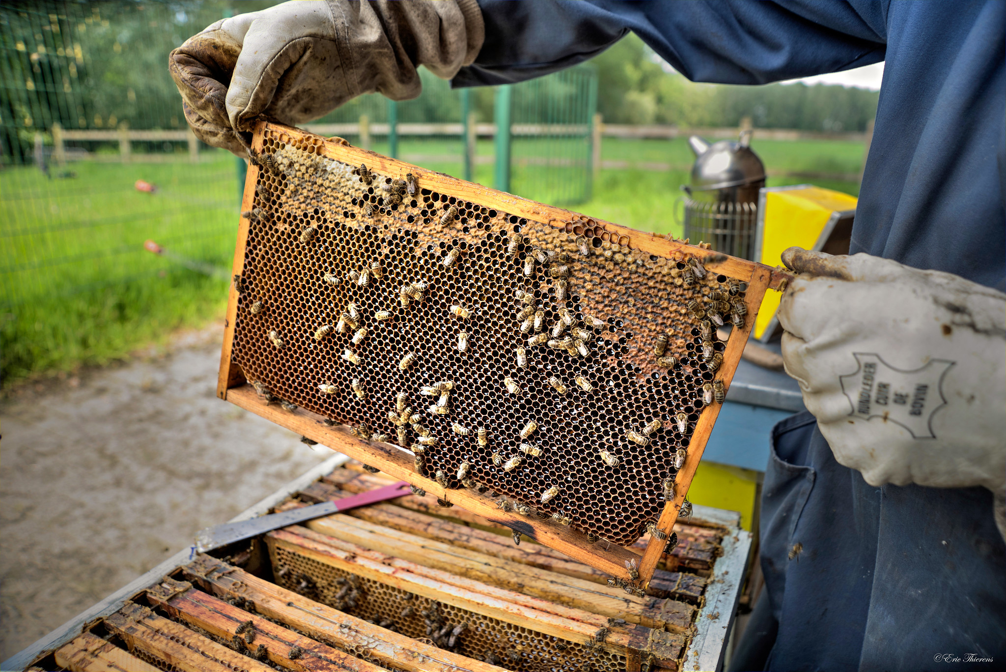 Wat ook lokaal is en eerder onverwacht op het pad van de Boterhoekhoeve kwam, zijn de bijenkasten. Een imker uit de buurt hield ermee op en de zes kasten vol carnicabijen werden overgenomen door de Boterhoek. Jaarlijks produceren deze kasten zo’n 50l honing. “Voor de bijenteelt vragen we raad aan een professionele imker. Die komt ons op geregelde tijdstippen helpen en adviseren”, vertelt Jean-Paul. “Dat is trouwens altijd al het motto van het bedrijf geweest: wanneer we het zelf niet weten, dan vragen we het gewoon. Het heeft geen zin om maanden of jaren aan te modderen. Het is dan beter om er meteen een professional bij te halen. Voor de hopteelt was dat trouwens Jan Vancayzeele, een Meetjeslandse hopkweker, opgegroeid in Poperinge, het walhalla van de hopteelt.”